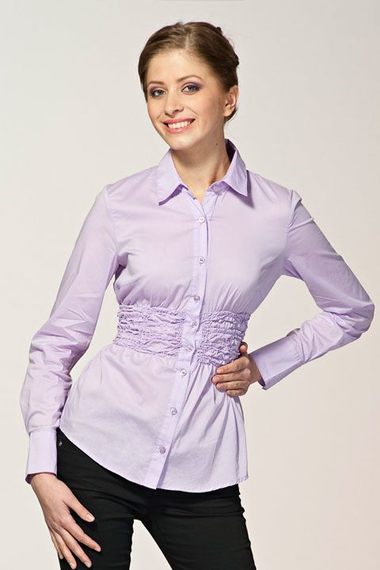 Застегивается на пуговицы, области талии присборена и прошита маленькими жатыми складками.