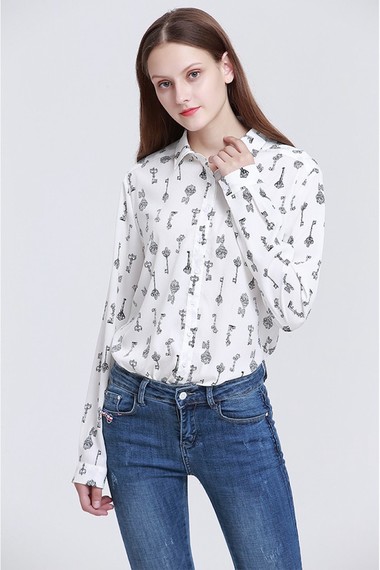 Фото товара 15302, белая рубашка с принтом ключи
